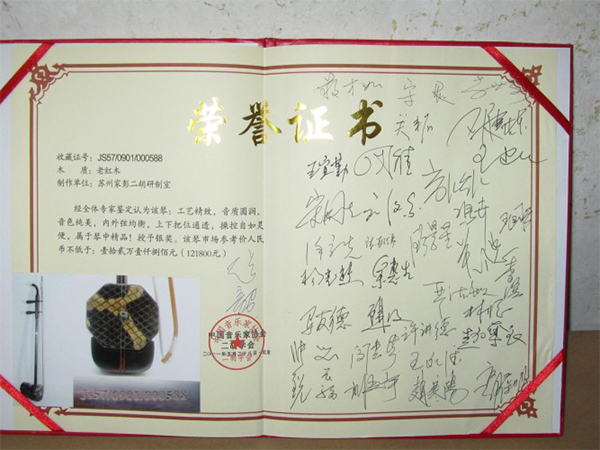 二胡制作大師丁家彭先生1949年出生樂器世家,17歲隨其祖父學(xué)琴藝,并深得精髓,其聰穎好學(xué),悉心鉆研與 探求二胡制作,博得同行的欽佩贊許,更得了許多知名演奏家的稱贊,充分認(rèn)識到二胡制作每個(gè)環(huán)節(jié),都對二胡制作都有影響力,因此對二胡的選材,選料,蟒皮都十分嚴(yán)格,二胡整體穩(wěn)定性良好,環(huán)境干擾影響極小。